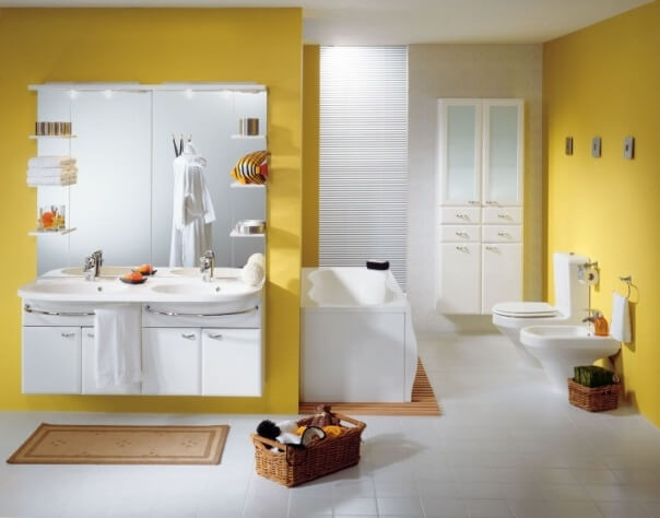 You can use yellow as the main color on the entire side bathroom wall. Yellow makes your bathroom looks bright, clean.